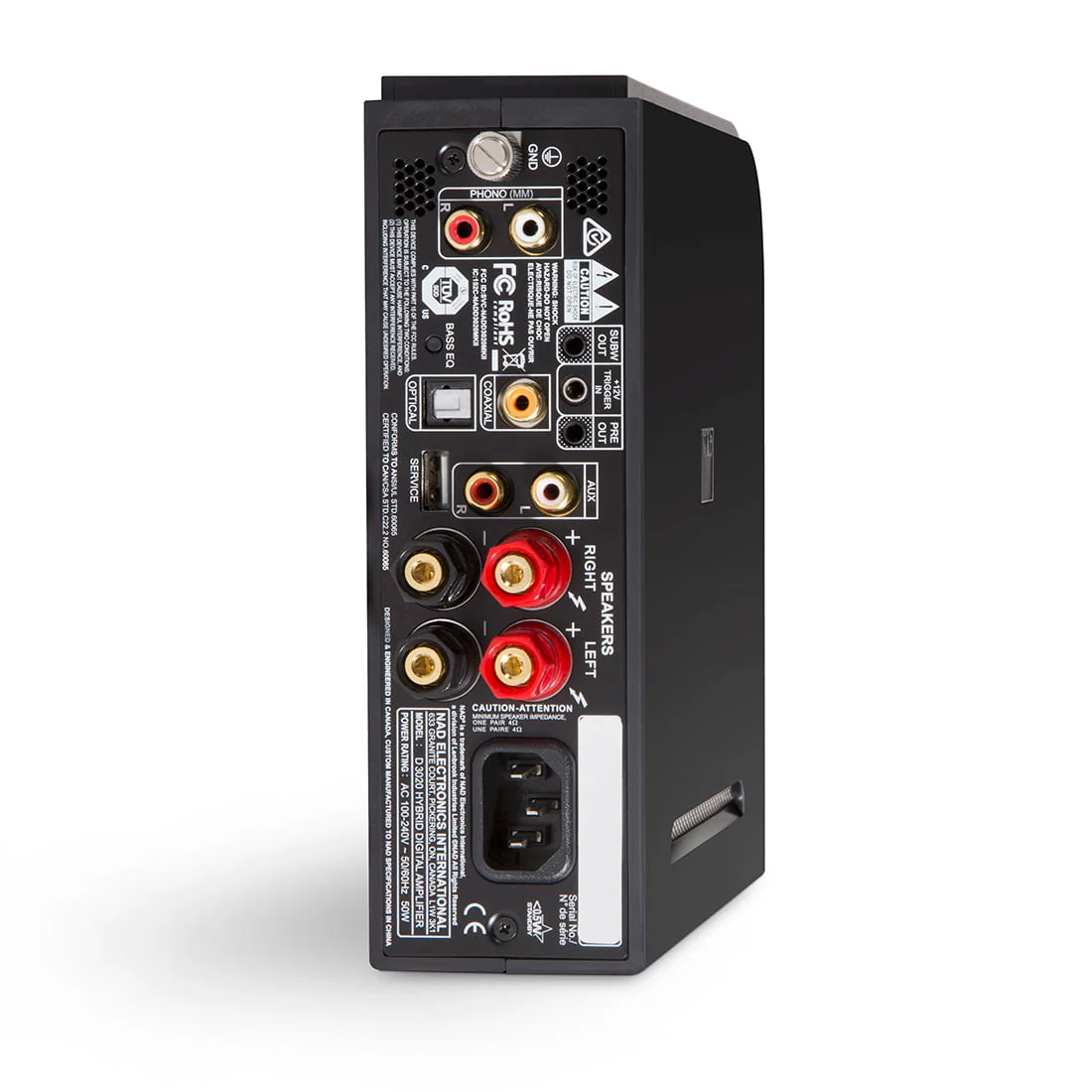 The D 3020’s highly efficient design wastes less energy, requiring only 20% of the power needed by traditional Hi-Fi amplifiers. It’s like trading in a gas guzzling car for a hybrid vehicle. Standby power consumption is a miniscule <0.5W. NAD has taken amplification to new lows, with lower distortion, lower noise, and also lower power consumption. NAD’s major focus is to find new technology that improves musical performance while consuming less power and using fewer non-renewable resources in manufacturing.